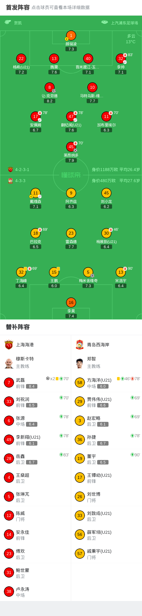 北京时间3月15日19:00,中超第2轮,上海海港主场对阵青岛西海岸。上半场,莱昂纳多进球被吹,戴维森击中立柱;下半场,让-克劳德、莱昂纳多先后破门,武磊梅开二度。终场前,梅米舍维奇头球破门,雷森德进球被吹无效。最终比分上海海港4-1力克青岛西海岸。